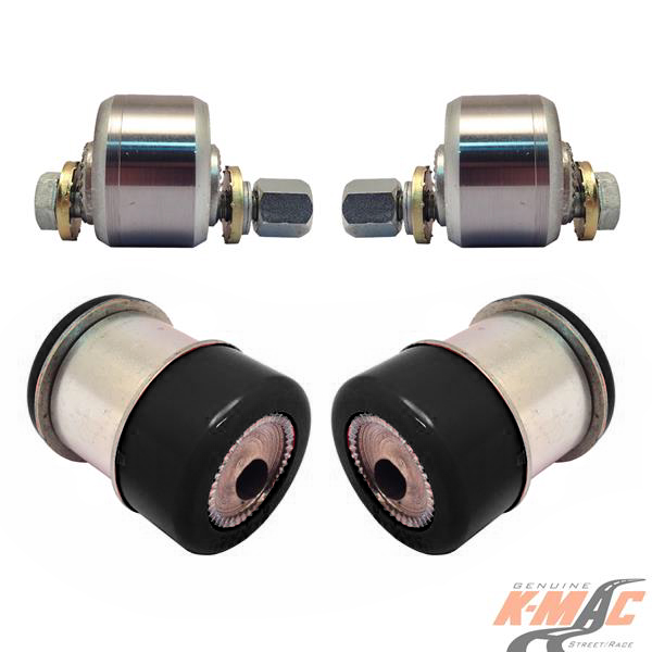* ALSO SEE COMPLETE RANGE OF “FRONT AND REAR PRECISELY ADJUSTABLE CAMBER, CASTER, TOE BUSHINGS ” All the very latest K-MAC design breakthroughs to resolve premature bush wear. Most bushings feature twice the load bearing area of OEM and are 2 axis / self aligning – without the use of air voids. Result is improved brake and steering response. The Camber, Caster and Toe bushings are also precisely adjustable (unique K-MAC patented design – single wrench on car, allowing accurate adjustment “under load” direct on alignment rack). With the “Camber” bushings providing also “extra” track width (and negative adjustment) on race days.