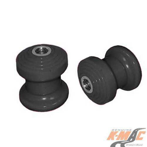 * ALSO SEE COMPLETE RANGE OF “FRONT AND REAR PRECISELY ADJUSTABLE CAMBER, CASTER, TOE BUSHINGS ” All the very latest K-MAC design breakthroughs to resolve premature bush wear. Most bushings feature twice the load bearing area of OEM and are 2 axis / self aligning – without the use of air voids. Result is improved brake and steering response. The Camber, Caster and Toe bushings are also precisely adjustable (unique K-MAC patented design – single wrench on car, allowing accurate adjustment “under load” direct on alignment rack). With the “Camber” bushings providing also “extra” track width (and negative adjustment) on race days.