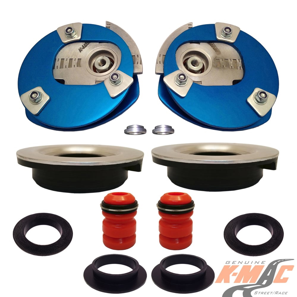 FEATURES / WHAT YOU WOULD EXPECT FROM K-MAC : Change settings just in the time taken to loosen the top mount nuts (and with strut brace fitted). No disassembly or strut removal. Unique Patented design, QUICKEST / BIGGEST adjustment system. ALSO WITH K-MAC IT’S NOT ONLY CAMBER – SEPARATE “CASTER” INCLUDED AS WELL.