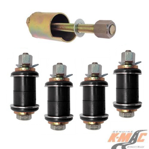 PRODUCT : K-MAC patented design allows precise Camber and Toe adjustment for the first time. Single wrench adjustment (under load) direct on alignment rack. Resolves costly premature inner edge tire wear and improves traction. Essential if Lowering, Load carrying or when expensive low profile tires fitted. Bush extraction and insertion tubes supplied.